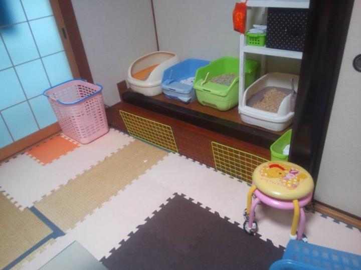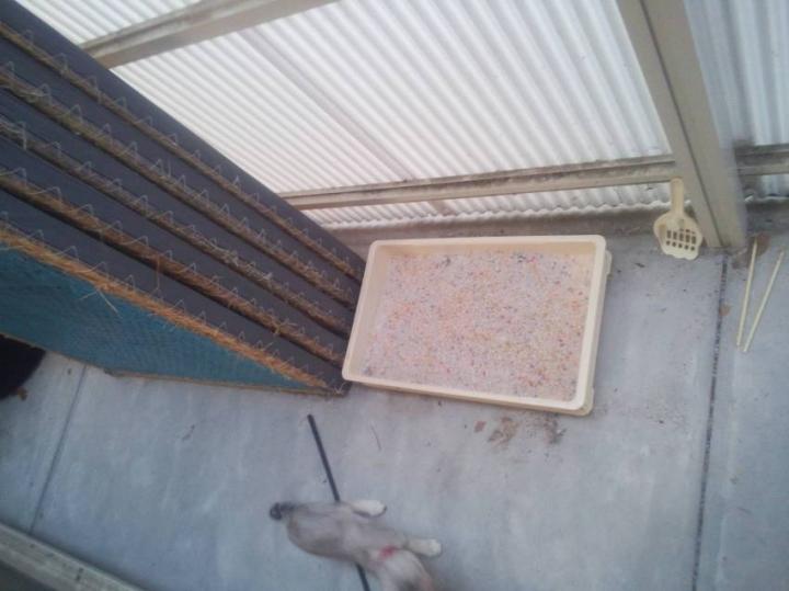 室内トイレの前にバリケード。もちろんメロ君対策ですwテラスの砂場もどうにかしてメロの手の届かないところに置きたいものです。。。