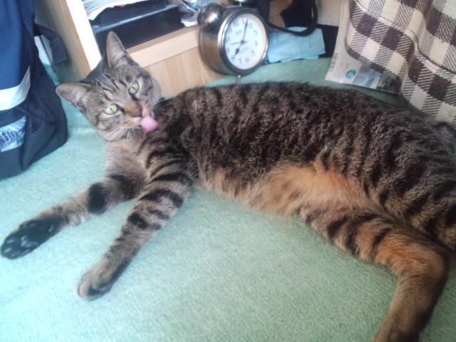 さっきは体温調整の為に体をペロペロ舐めてました。