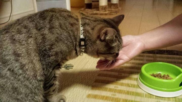 残す量が徐々に増えてきたので、「ドラく~ん、ゴハン食べなよ~」とか言いながら残りのゴハンをワタシの手に載せて出したら…