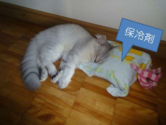 保冷剤をおいてあげたら、最初は警戒してましたが