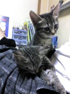 爪きり直後のあんずとひるがお(寝たまま)やっぱり不服そう。