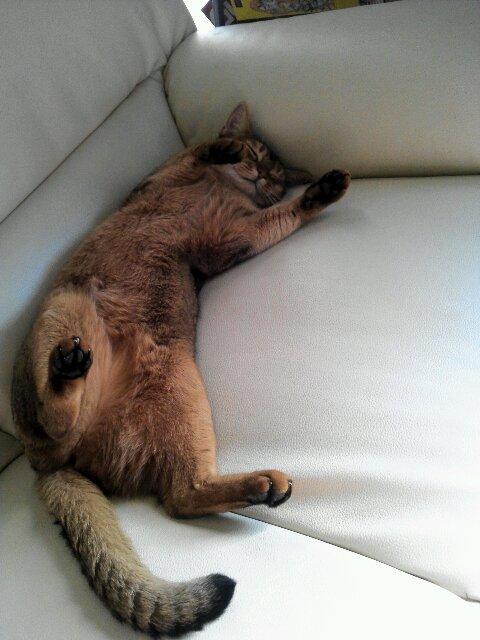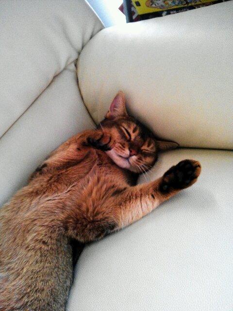 そんな暑い日でも涼しい場所を見つけてはゴロゴロしているツナ(^_^;)