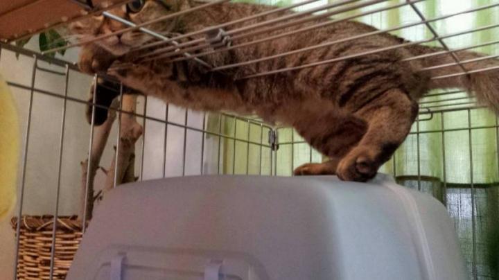 ケージの上でグタグダするのが大好きなドラくんのために、休憩できるようマットをつけたのに~(泣)
