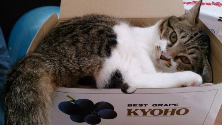もちゃこ大好物の巨峰の箱だにゃ!!