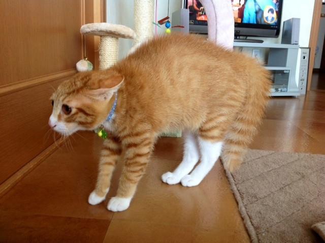兄弟二匹!毛が逆立って、固まって、逃げる事も出来ません!!