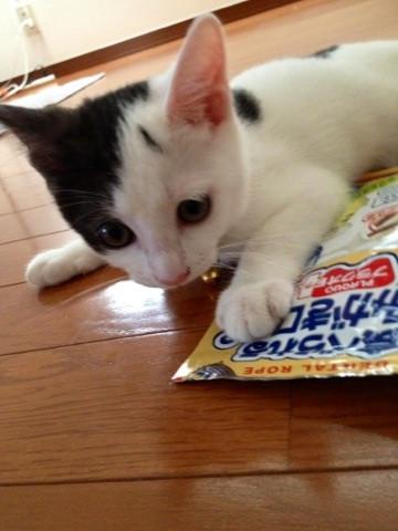 今日は、シイの歯の健康のため、『歯みがきロープ』というおやつをあげてみました。