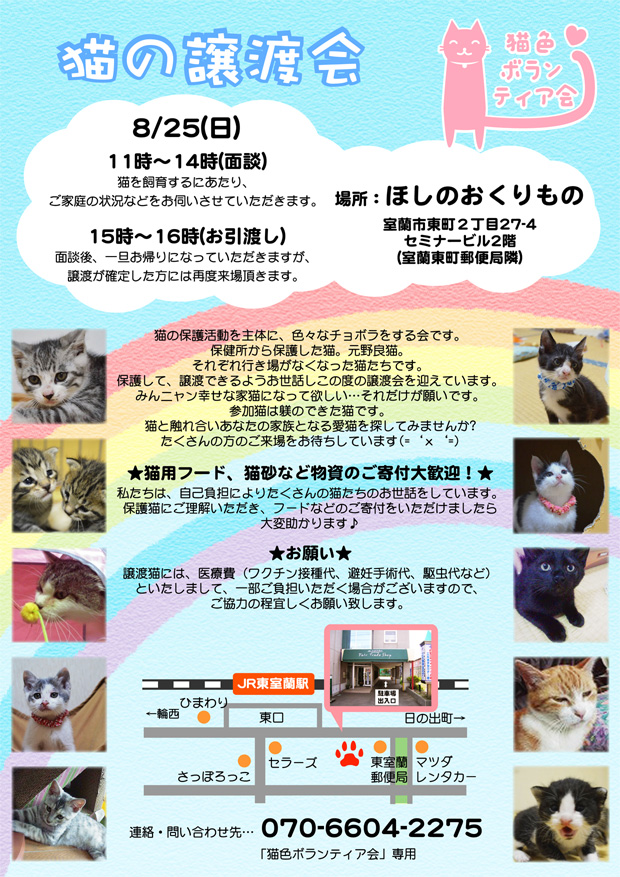 「猫カフェ」&「譲渡会」・・室蘭市(東日本ハウス展示場)・・9/15