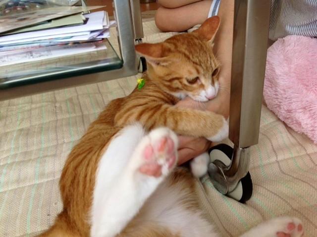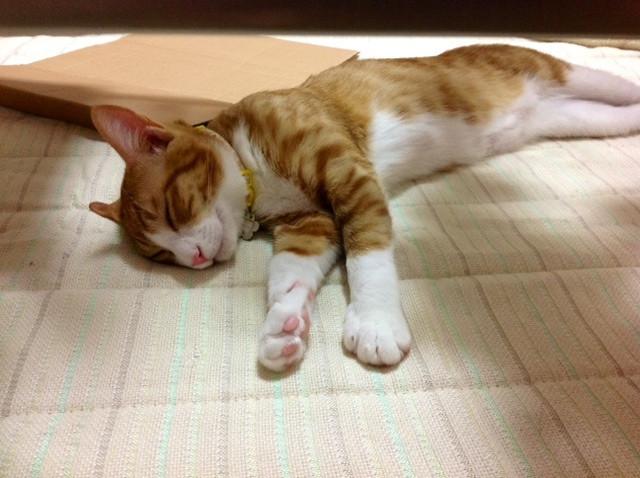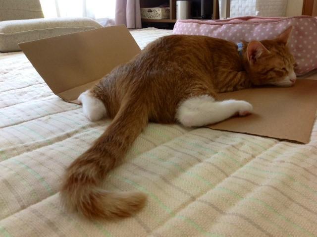 ダンボールは、冷んやりして、気持ちがいいな~!!