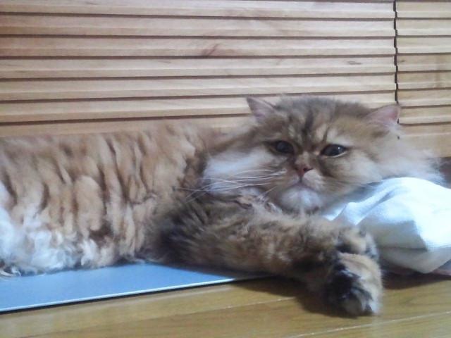 保冷剤をタオルでくるんであげたら、むぅちゃんが抱きしめるように