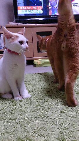 んにゃ?ちょっと距離感あるのに顔の大きさが一緒だ。
