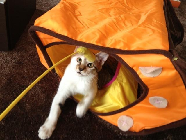 じゃらしをくわえて来て、ちょっと休憩してます(=^x^=)