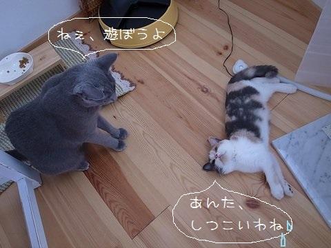 何度も何度も遊びに誘っては「うるさい!あっちいって!」と猫パンチくらってます。