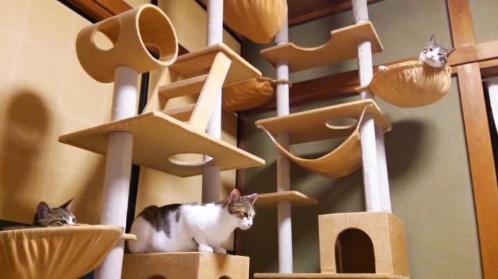 にゃんず達にストレスが溜まらぬようにキャットタワーを購入しました。