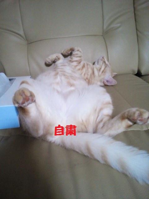 寝てて、いきなり起き上がって餌皿に顔を突っ込みます。