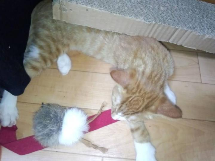 なんて話してたら…居ました(笑)爪とぎこ下敷きで爆睡(゚o゚;