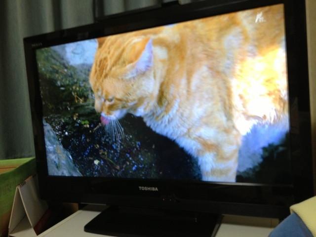 その眼差しの先には、岩合さんの 世界ねこ歩き のねこちゃん(=^x^=)