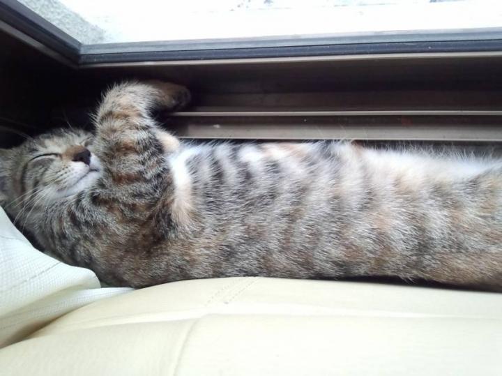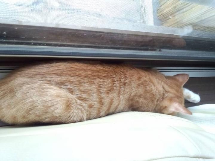器用に長く隙間に挟まり、どうやったら爆睡出来るのやら(笑)