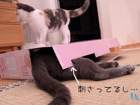 しかもこのダンボール、細いからタマキが遊べるようにと小さくくり抜いたものなのに、セイがぐいぐいのキュッキュとしながら一生懸命遊んでくれてます…