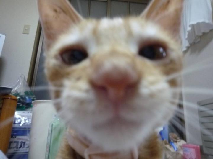 本人はムフーと満足げ。きみ距離感がちょっとおかしいよ。