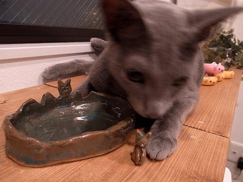 あと、余った粘土がほんの少しあって、陶芸の先生が「猫でも作ったら?」と言うので、これまた適当にパーツを作って合体!