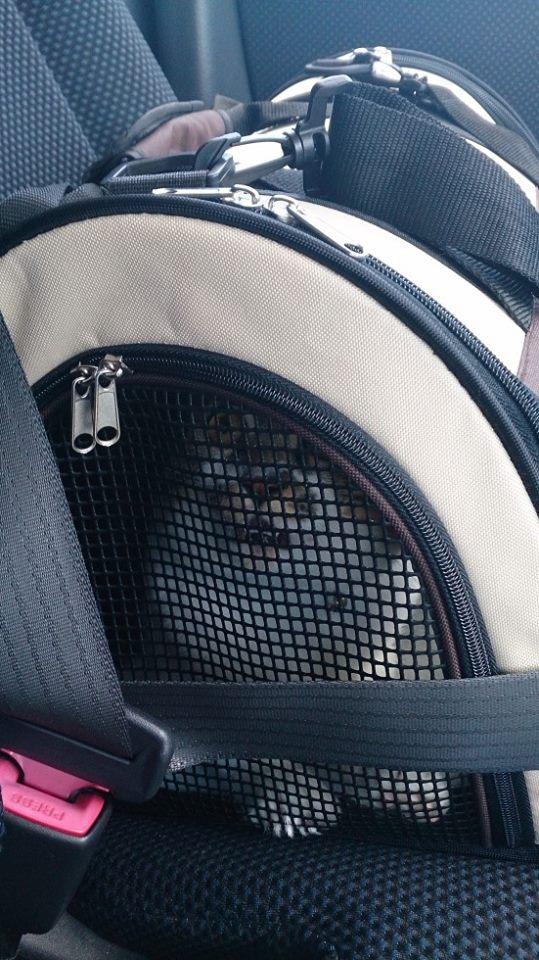 病院に着いたら洗濯ネットに入れられてシュンとなって笑っちゃいました。