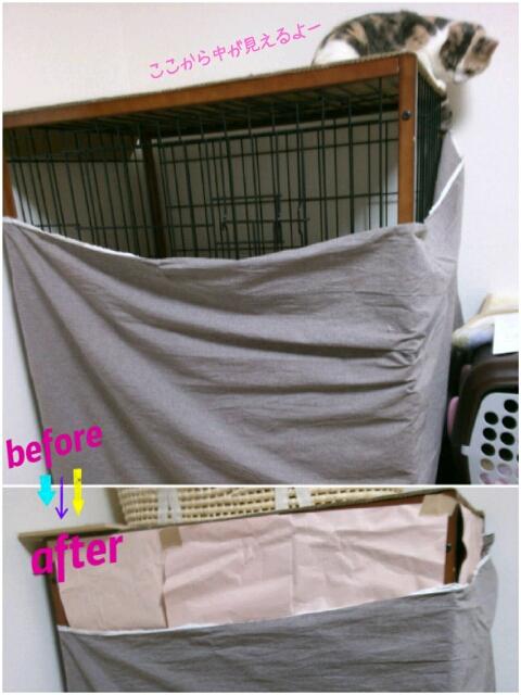 仔猫がうちに来たら入ってもらうケージに布を貼りました。
