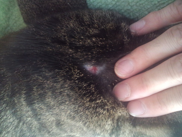 ビックリ、豆粒位の禿に掻いたとこが赤く炎症を起こしてました。