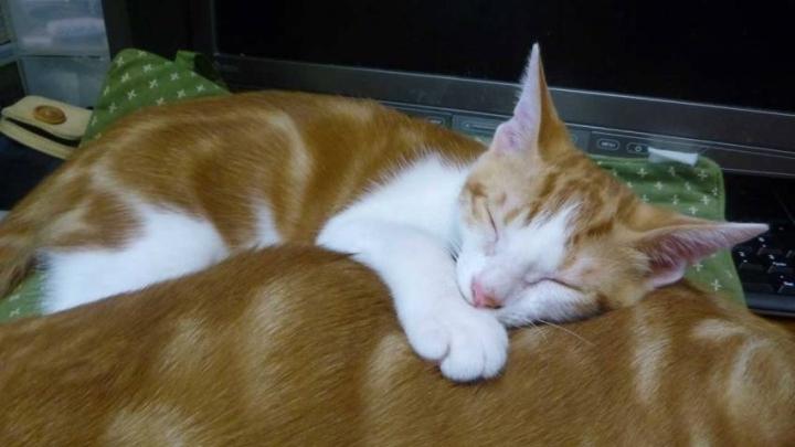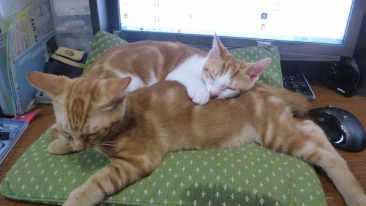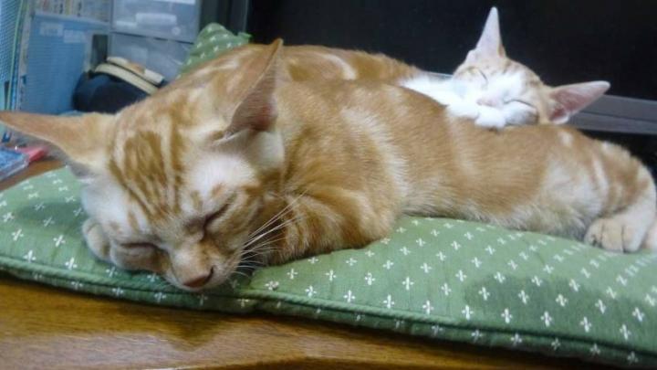 なんかどびん(白茶の方)は夢を見てるのか、ピクピクしながら寝てんのよね。かわえー。