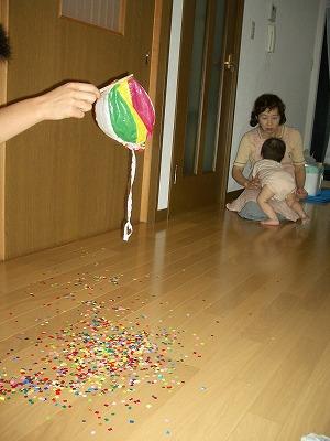 娘の頭にドサッと切った折り紙が落ちてきた!(お母さん、入れすぎだよっ)(^_^;)