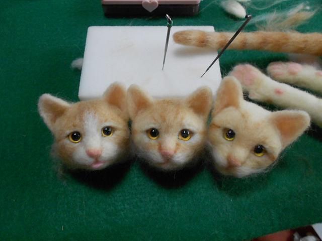 制作途中、左からタマちゃん 花子ちゃん ミイちゃん