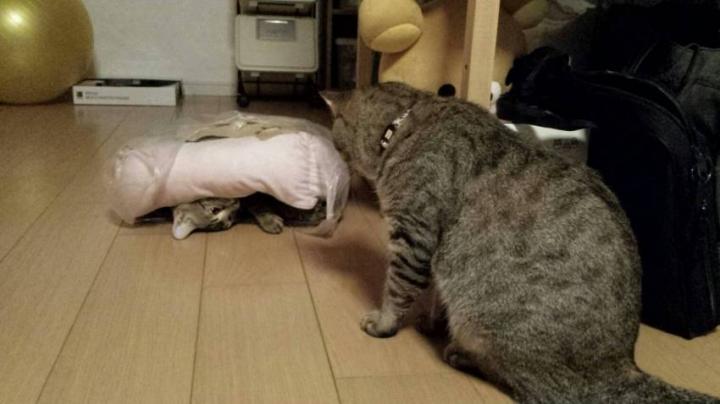 我が家のニャンズ、台風のこと知ってか知らずか、早朝からゴハンのおねだり→おとさんが起きてゴハンを食べさせてくれる、おかさんはお構いなしで寝る。
