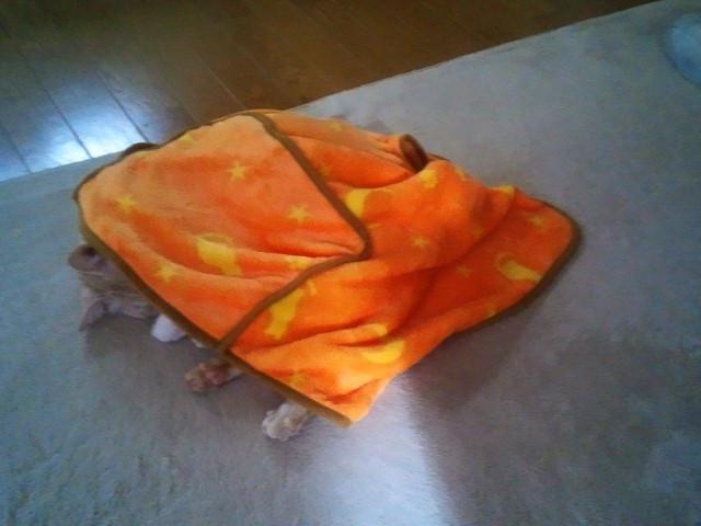 姫が力尽きたようです。毛布をかけてあげました。