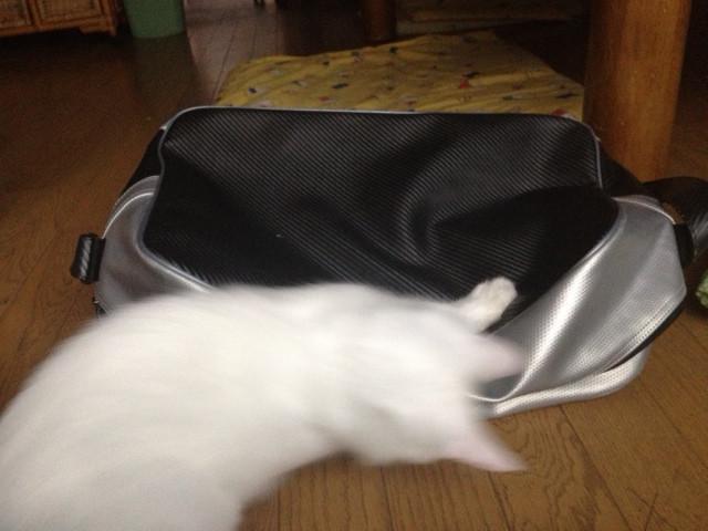 うちのにゃんこ達は息子の部活バックが大好きです。