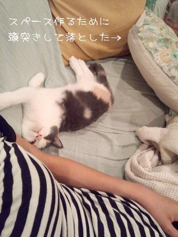 セイがどく気配がなかったので、すぐあきらめたんですが、私の腹の上をトストス歩き反対側へ回ると、私の横にあるクッションに頭をズボッと突っ込んだ~~~!!