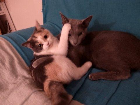 セイも学習してきてて、いきなりガバッとすると逃げられちゃうから、まずはさりげなく近づき毛づくろい♪