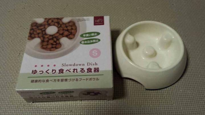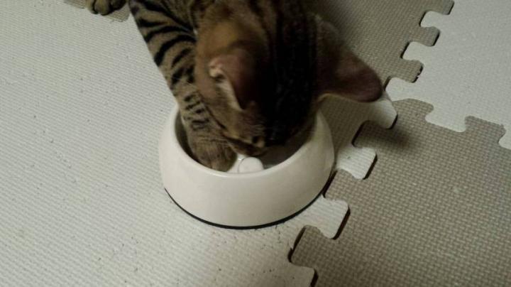 食べる様子をずっと見てたんですが、いつもフードに噛みついてすくってたので、お皿の突起に何度も噛みついてました(笑)