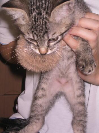 栗拾いの季節ですが、「あんず」が咥えているのは、毬栗ではなく、お気に入りのネコのオモチャのボンボンです。