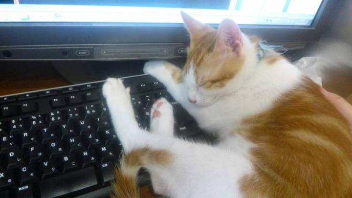 作業がしたいのでのかそうとしたら、キーボードにしがみつき始めたでござる。