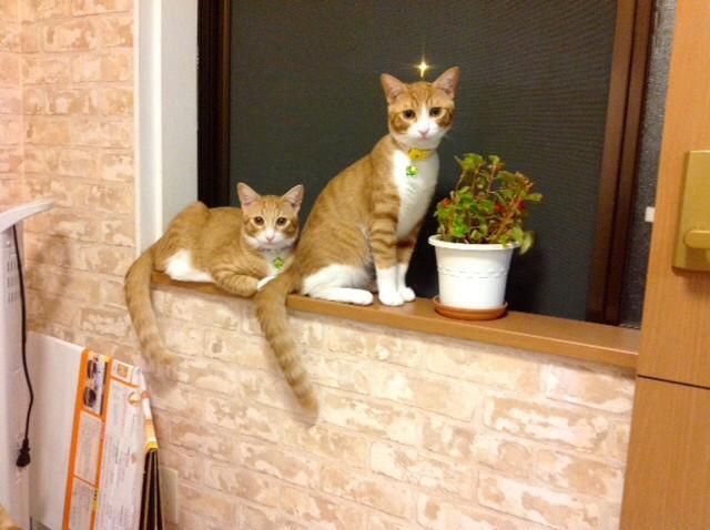 窓際で仲良く!ハルくんの頭の上に?