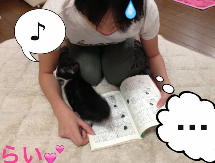 本を読もうものなら必ず邪魔し、お風呂入ればドアの前でミィミィ、さっきは娘の膝の上でウトウトしてました(〃゚艸゚)