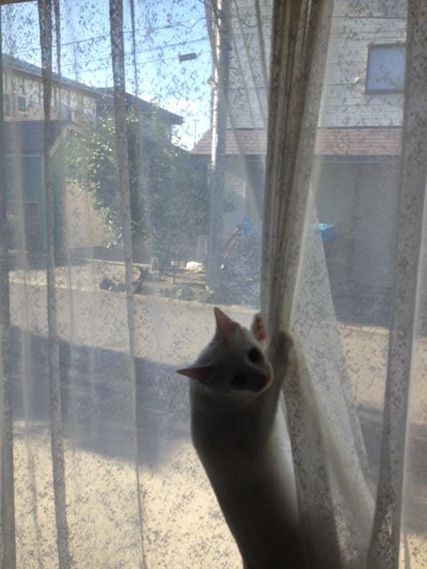 レースのカーテン破けるから止めて欲しいんだけどな。