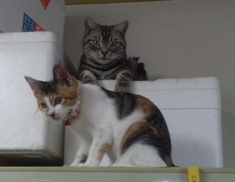 さつきちゃんにお気に入りの冷蔵庫の上も取られそうなハルちゃん。