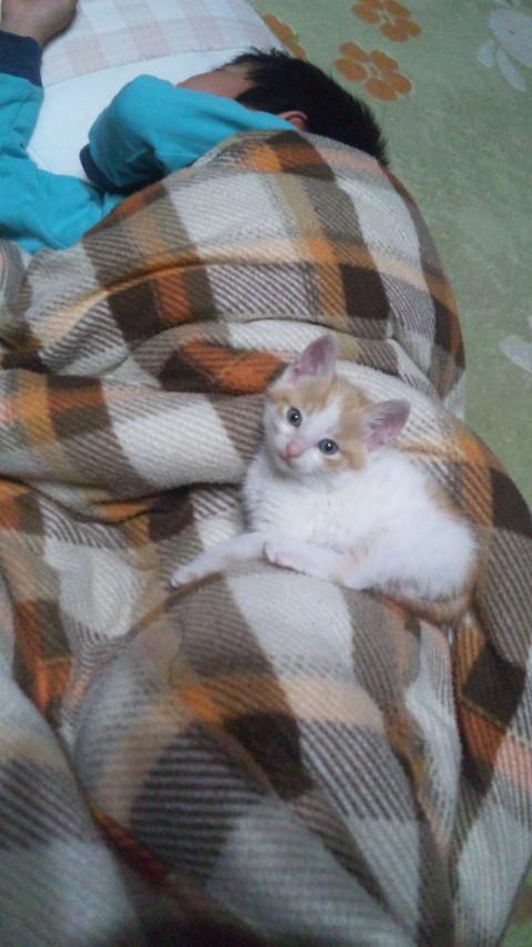 特に 末っ子の上が気に入ったらしくって 毎日毎日 末っ子にくっついては 寝ていました。
