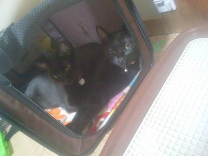 ・・・最近、家の中の模様替えをしてメロくんのハウスをケージの外に出したら家主ではなくクロネコ2匹が住み着いてしまいましたw