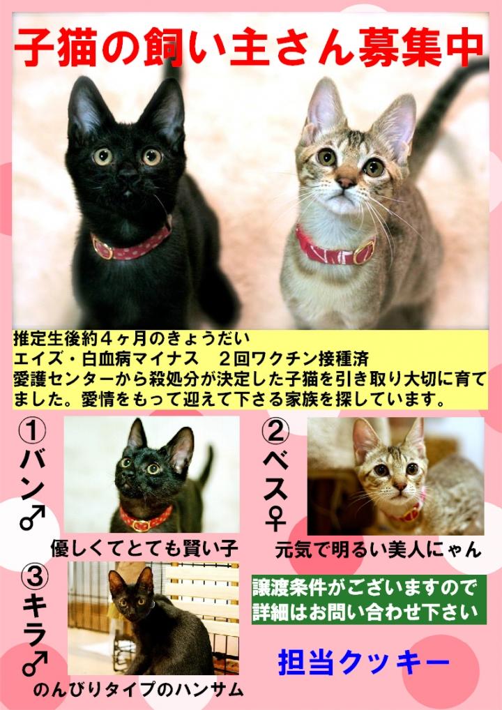埼玉県にて里親募集サイトを見て次々と子猫を譲り受けては死なせているそうです。お気をつけください。