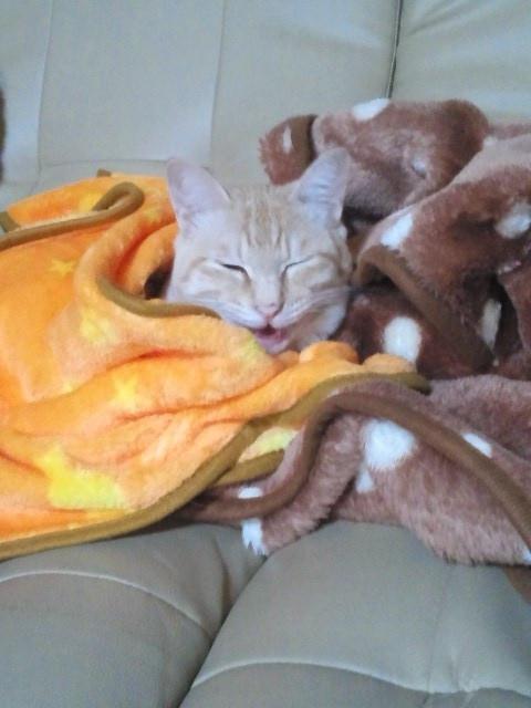 姫がソファーの上で寒そうに寝ているように見えたので