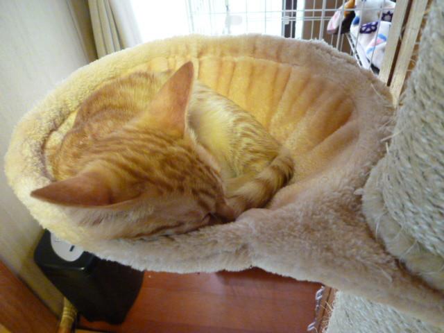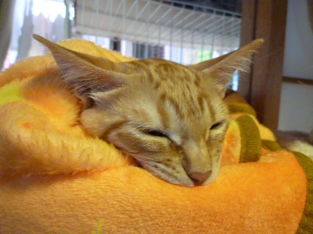 ハンモックで寝てる姿が寒そうだったので雑誌の付録のフリースをかけてあげました。