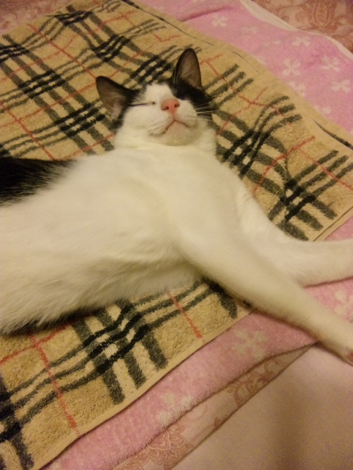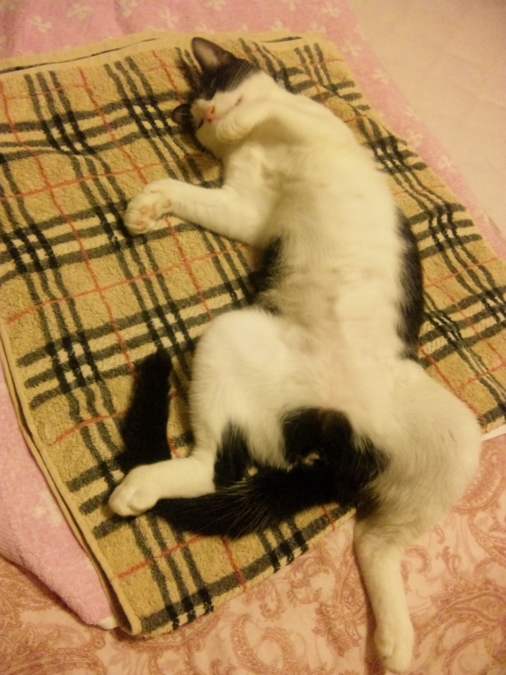 こちらはヘンリー。もうおなか丸出しで寝ている姿が定番となりました。
