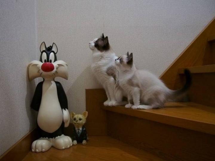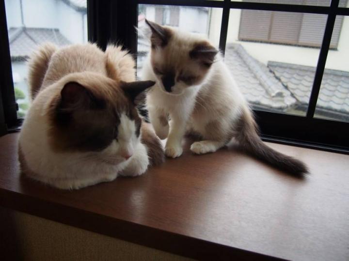 レオ君とランちゃんが2ニャンの時は、よくあるのですが大体じゃれて遊ぶのが忙しいナナちゃんがじっとしているのがめずらしんです。