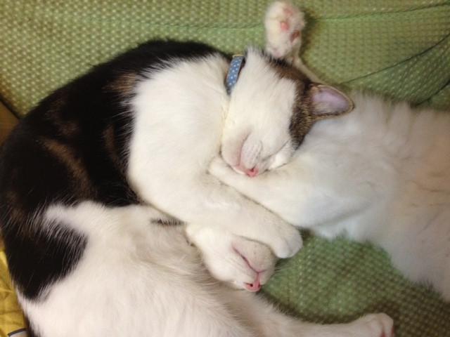 2匹してかわいい格好で寝てました。